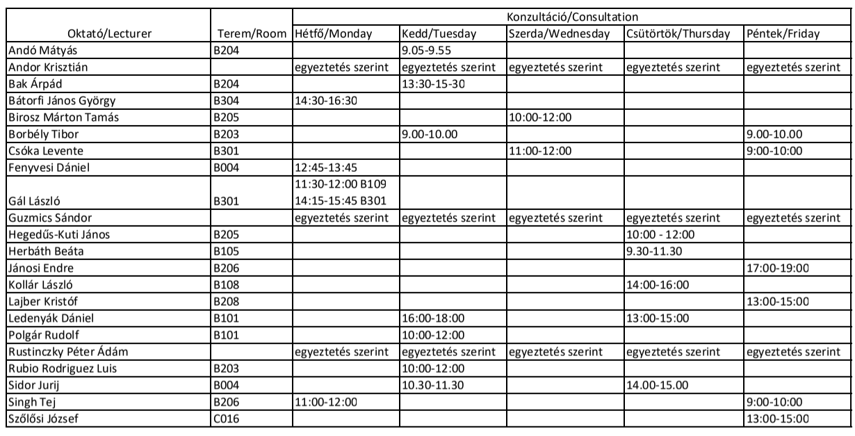Konzultációs időpontok 2025/26 1. félév: